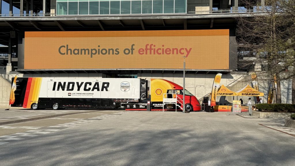 Shell has integrated the truck into IndyCar logistics, hauling the technical inspection and administrative trailers for the 2025 and 2026 seasons as part of Penske Entertainment’s “Racing Toward Zero” initiative targeting a 50% reduction in operational emissions by 2030.